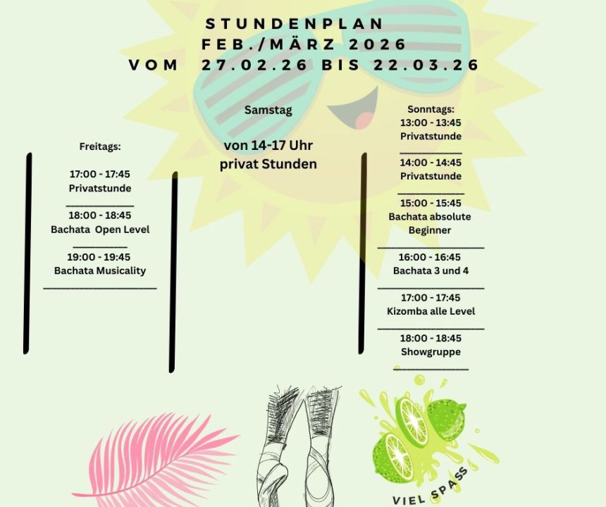 Sonntag der 01.02.2026 um 16 Uhr Bachata Mittelstufe